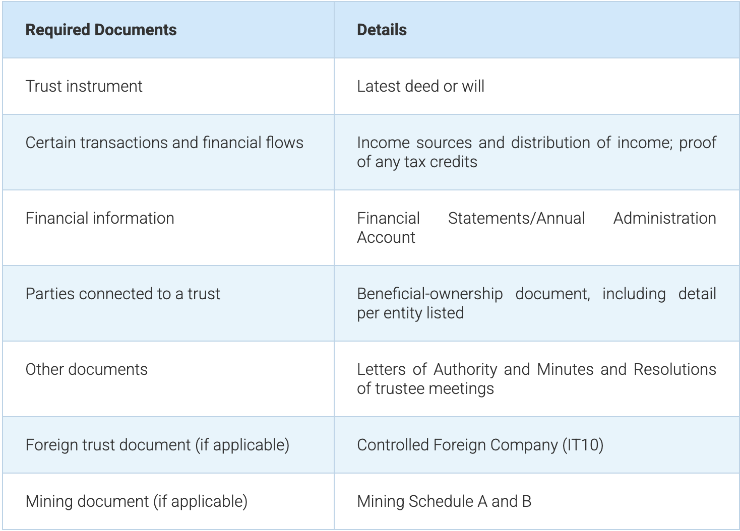 Taking into account recent changes to the legislation, trustees must submit their returns for the 2025 year of assessment and file the mandatory supporting documents listed further below.